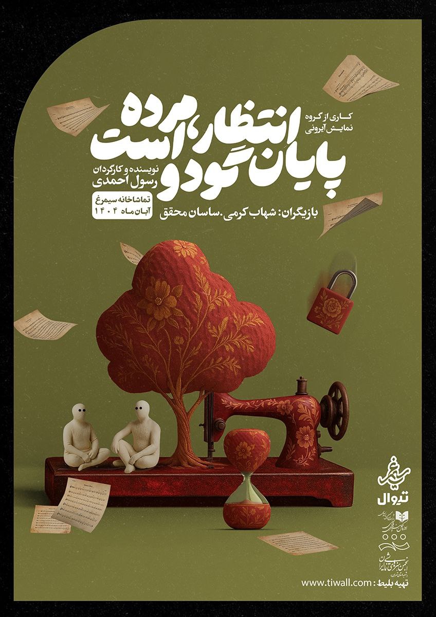 نمایش «پایان انتظار، گدو مرده است» از دوم آبانماه ساعت ۱۹، روزهای شنبه تا چهارشنبه در تماشاخانه سیمرغ اجرا میشود.