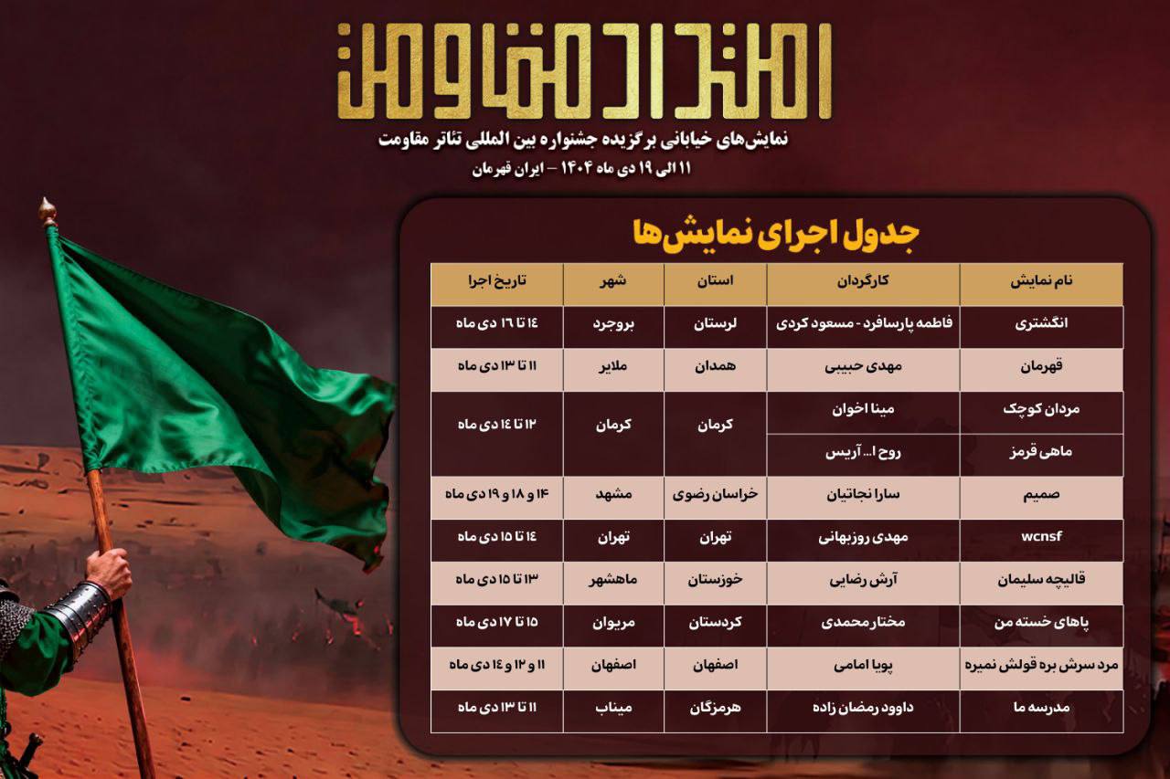 جدول اجرای یادواره نمایشهای خیابانی «امتداد مقاومت» منتشر شد
